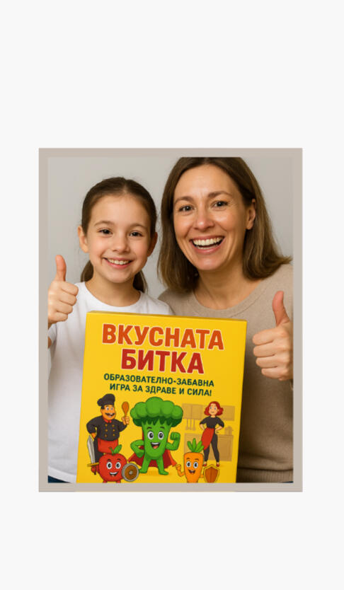 С „Вкусната битка“ децата не просто играят – те учат, движат се и развиват полезни навици, докато се забавляват. Освен играта получавате и два специални подаръка: